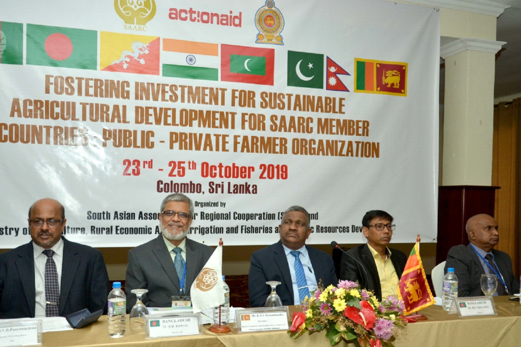 SAARC Agriculture centre (SAC) organized a SAARC Regional Consultation on “Fostering Investment for Sustainable Agricultural Development for SAARC Member Countries: Public-Private-Farmer Cooperation (PPFC)” in Colombo, Sri Lanka on 23-25 October 2019. The program was jointly organized by SAARC Agriculture Centre (SAC), Ministry of Agriculture, Sri Lanka and ActionAid Bangladesh. The consultation program aims to establish favorable conditions to attract responsible investment in agriculture sectors through a clear policy and regulatory framework nationally and a more coherent approach across SAARC.