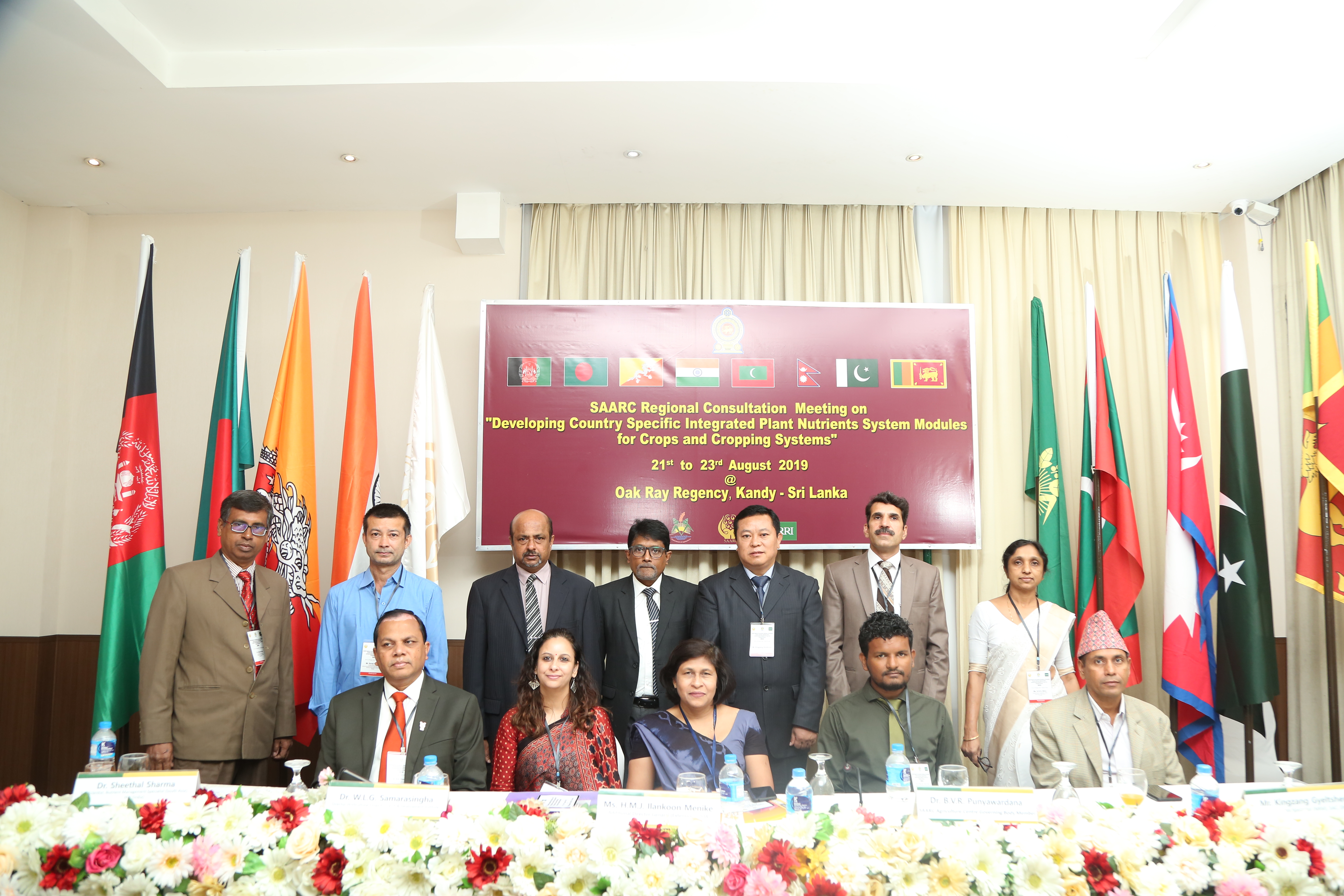 SAARC Regional Consultation Meeting on Developing Country Specific Integrated Plant Nutrition System Modules for Major Crops and Cropping System was held at Kandy, Sri Lanka from 21- 23 August 2019. SAARC Agriculture Centre (SAC), Horticulture Crop Research & Development Institute (HORDI) and International Rice Research Institute (IRRI) jointly organized this meeting. It was graced by Honorable Chief Guest, Ms Jayantha Ilangakoon, Additional Director General, Department of Agriculture; Guests of Honor Dr. W.M.G. Samarasinghe, Director, Horticulture Crop Research & Development Institute and Dr. Punyawardana, SAARC Agriculture Centre’s Governing Board Member, Sri Lanka. Country Focal Experts from 7 SAARC Member States (Bangladesh, Bhutan, India, Maldives, Nepal, Pakistan, Sri Lanka) and IRRI have attended this consultation meeting. In addition, 15 Local Participants from Horticulture, Tea & Rubber Plantations, University and non-governmental organizations have also attended the meeting. Mr. Kinzang Gyeltshen, Senior Program Specialist (NRM) from SAARC Agriculture Centre (SAC) was the over all coordinator of this consultation meeting.