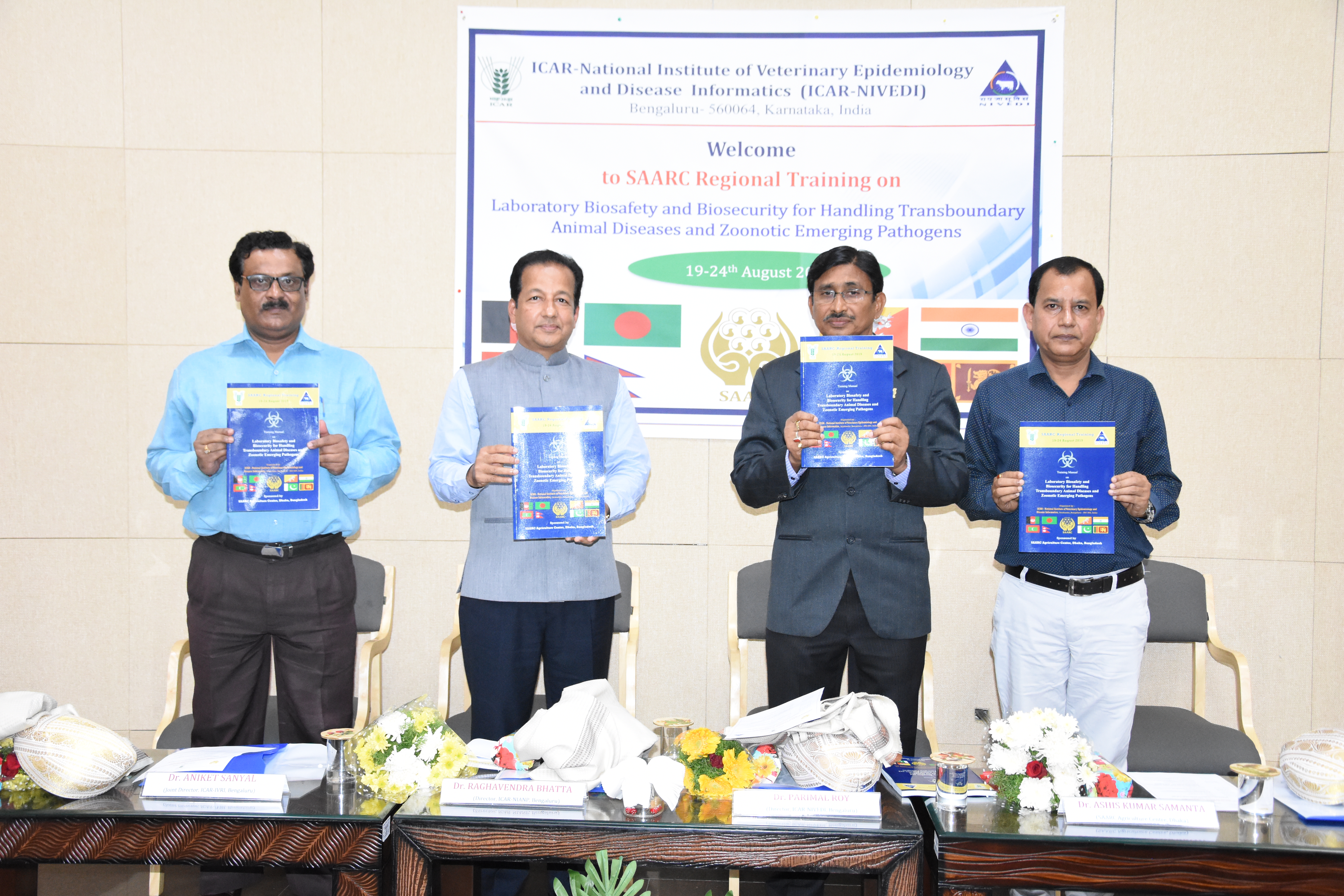 The SAARC Regional capacity development programme on “Laboratory Biosafety and Biosecurity for Handling Transboundary Animal diseases and Zoonotic Emerging Pathogens” was conducted at ICAR- National Institute of Veterinary Epidemiology and Disease Informatics (ICAR-NIVEDI), Yelahanka, Bengaluru, India during 19th to 24th August, 2019. The said regional training programme was jointly organized by the SAARC Agriculture Centre, Dhaka, Bangladesh and ICAR- National Institute of Veterinary Epidemiology and Disease Informatics, Yelahanka, Bengaluru, India. Dr. Ashis Kumar Samanta, Senior Programme Specialist – Livestock was the programme coordinator and lead the SAARC delegation team to the host organization.