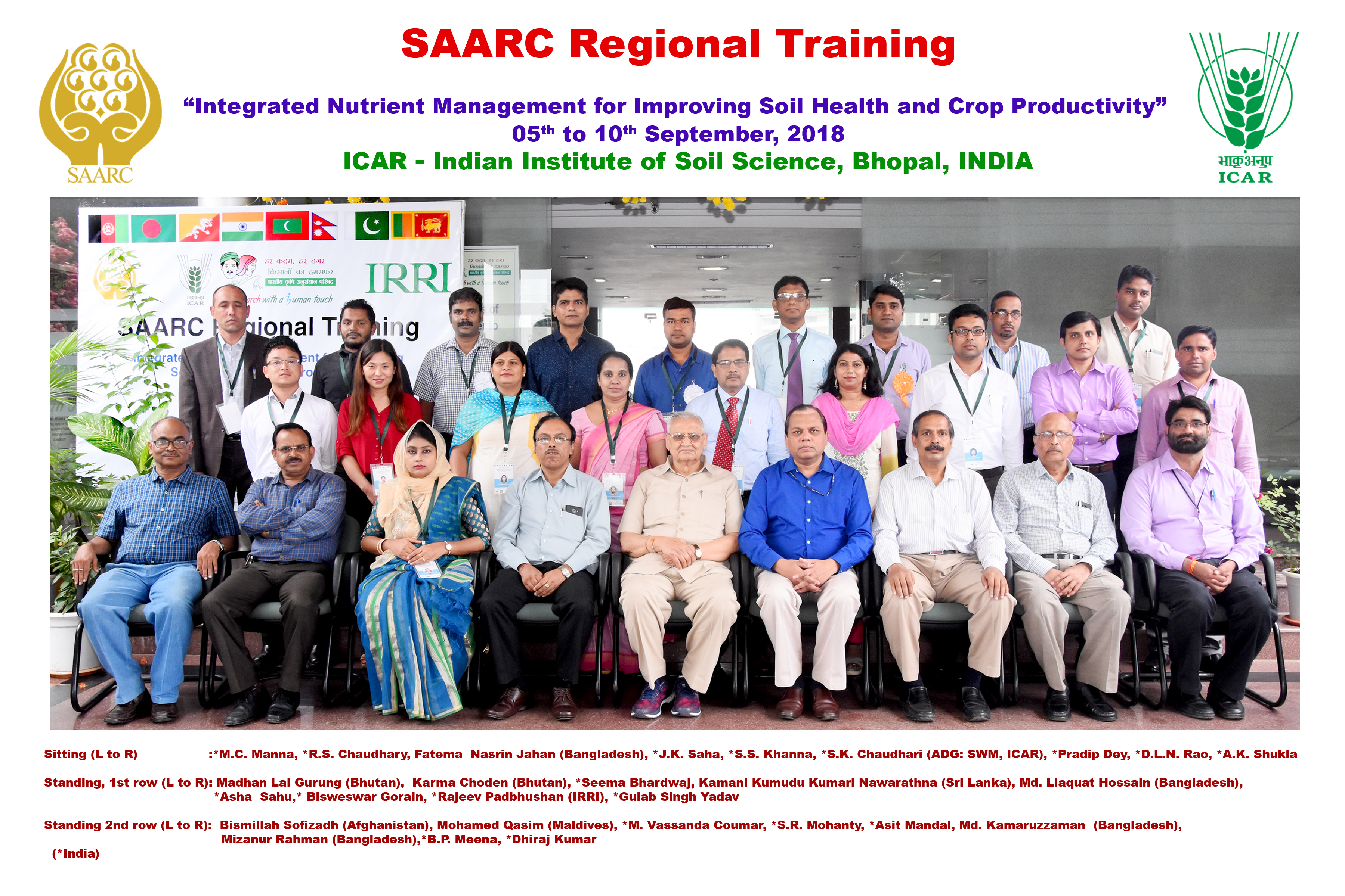 The role of integrated plant nutrient management system (IPNS) in sustainability of agriculture is important in view of the widespread soil degradation and deterioration of soil health. For increased awareness and greater scientific cooperation among member countries of South Asian Association for Regional Cooperation (SAARC), the SAARC Agricultural Centre (SAC), Dhaka, Bangladesh and the Indian Council of Agricultural Research (ICAR) took initiatives for Regional Training Program on various important issues affecting agriculture sector of the region. As a part of this initiative, the ICAR-Indian Institute of Soil Science, Bhopal in collaboration with SAC, Dhaka and International Rice Research Institute (IRRI) is organizing a training program at ICAR-IISS, Bhopal during 5-10 September, 2018 on the theme “Integrated Plant Nutrient Management System in SAARC countries”. The participants include 16 researchers and department officialsfrom Afghanistan, Bangladesh, Bhutan, India, Maldivesand Sri Lanka. The objective of this training is sharing of ideas, commonalities and solutions among the researchers and other stakeholders of the SAARC countriesin relation tointegrated plant nutrient management system for improving soil health and crop productivity
